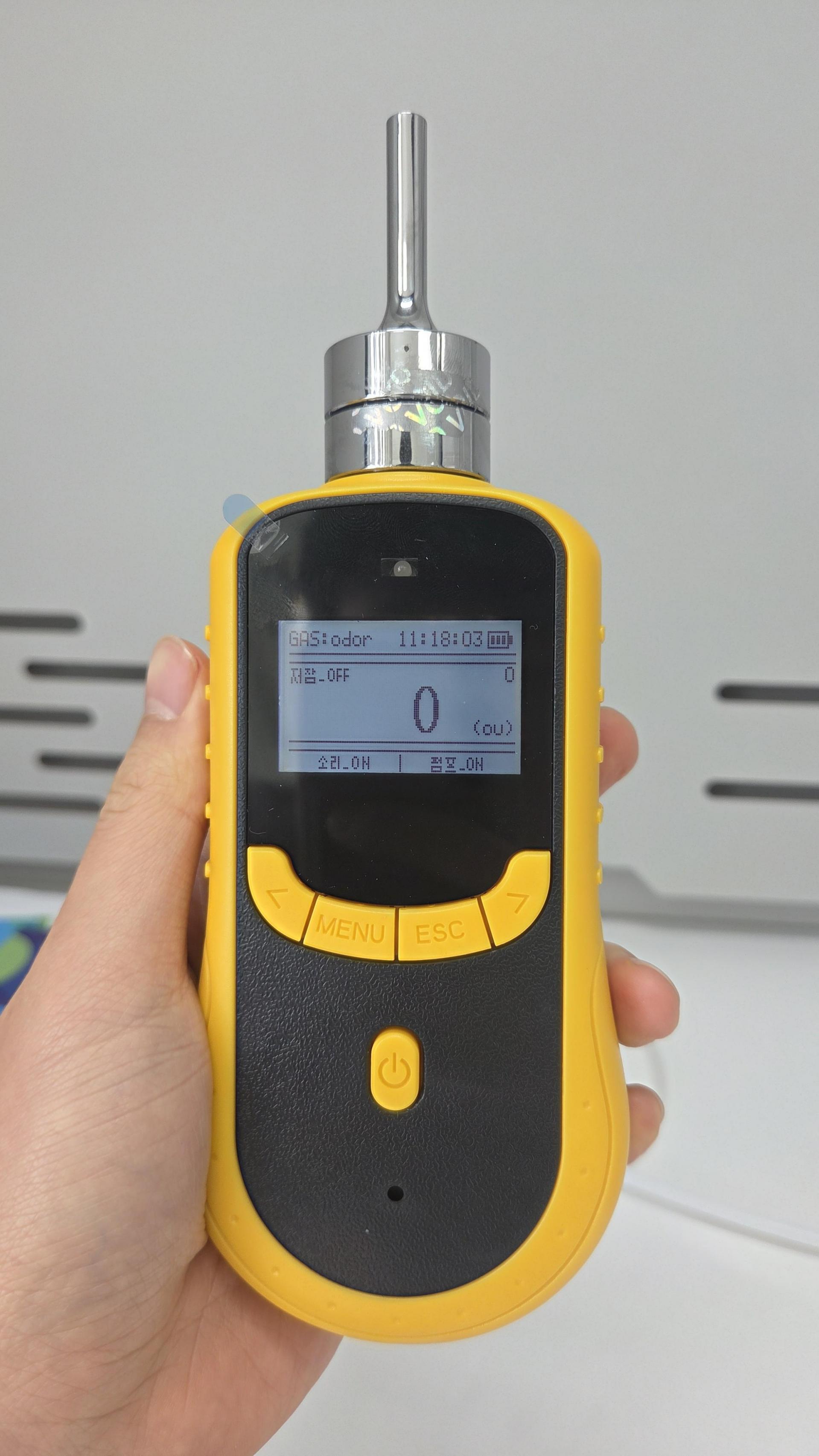악취의 농도(쎼기)를 ou 단위로 확인할 수 있습니다. 악취의 단위는 하나의 가스가 아니기 떄문에 가스를 구별할 수 없으며